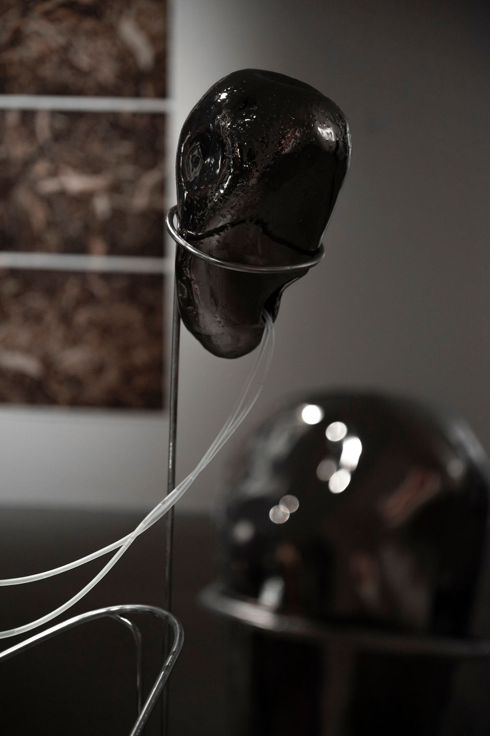 Her multi-sensory installations foreground the intimate bonds between humans and more-than-human beings. Whether through speaker-embedded ceramics or movement-activated environments, her practice slows perception and fosters interspecies empathy. Sounds drawn from the artist’s own microbiome travel through fired clay, while the viewers’ presence influences the rhythm and flow of fluids—reminders of connections beyond language that invite a sensorial encounter.