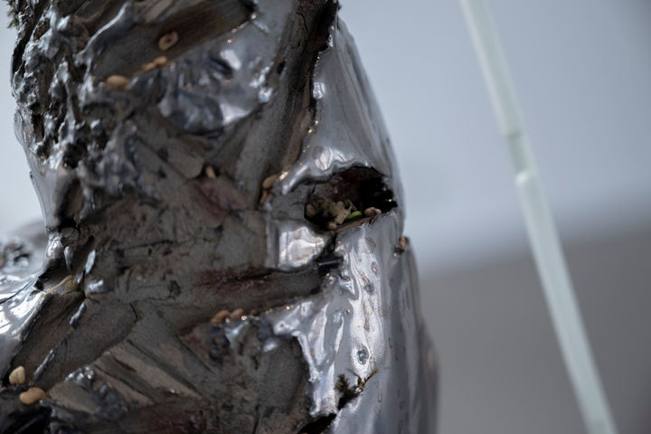 Steel, clay, sound recording from the artist’s body, water and seeds harvested in the city of Reykjavik, and macroscopic video recording of the said ecosystems.